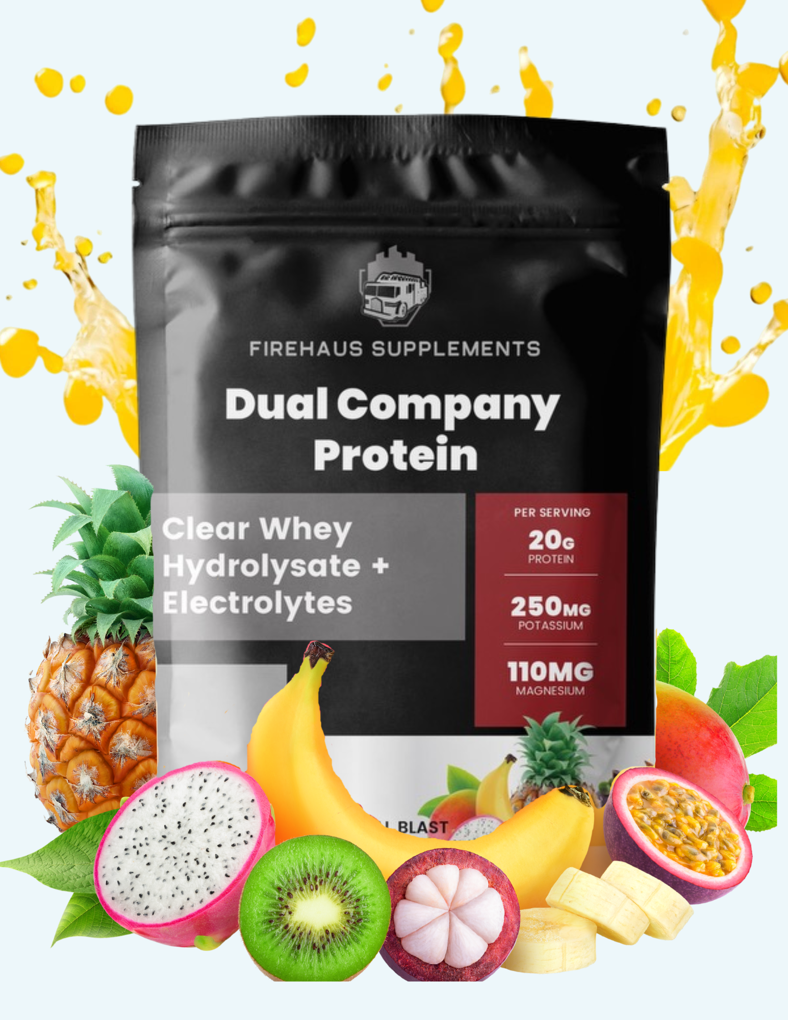 Stay fueled and hydrated with Dual Company Protein — a clear whey protein supplement created with firefighters and athletes in mind. This advanced formula combines hydrolyzed whey and collagen proteins with essential electrolytes to support training, performance, and endurance.